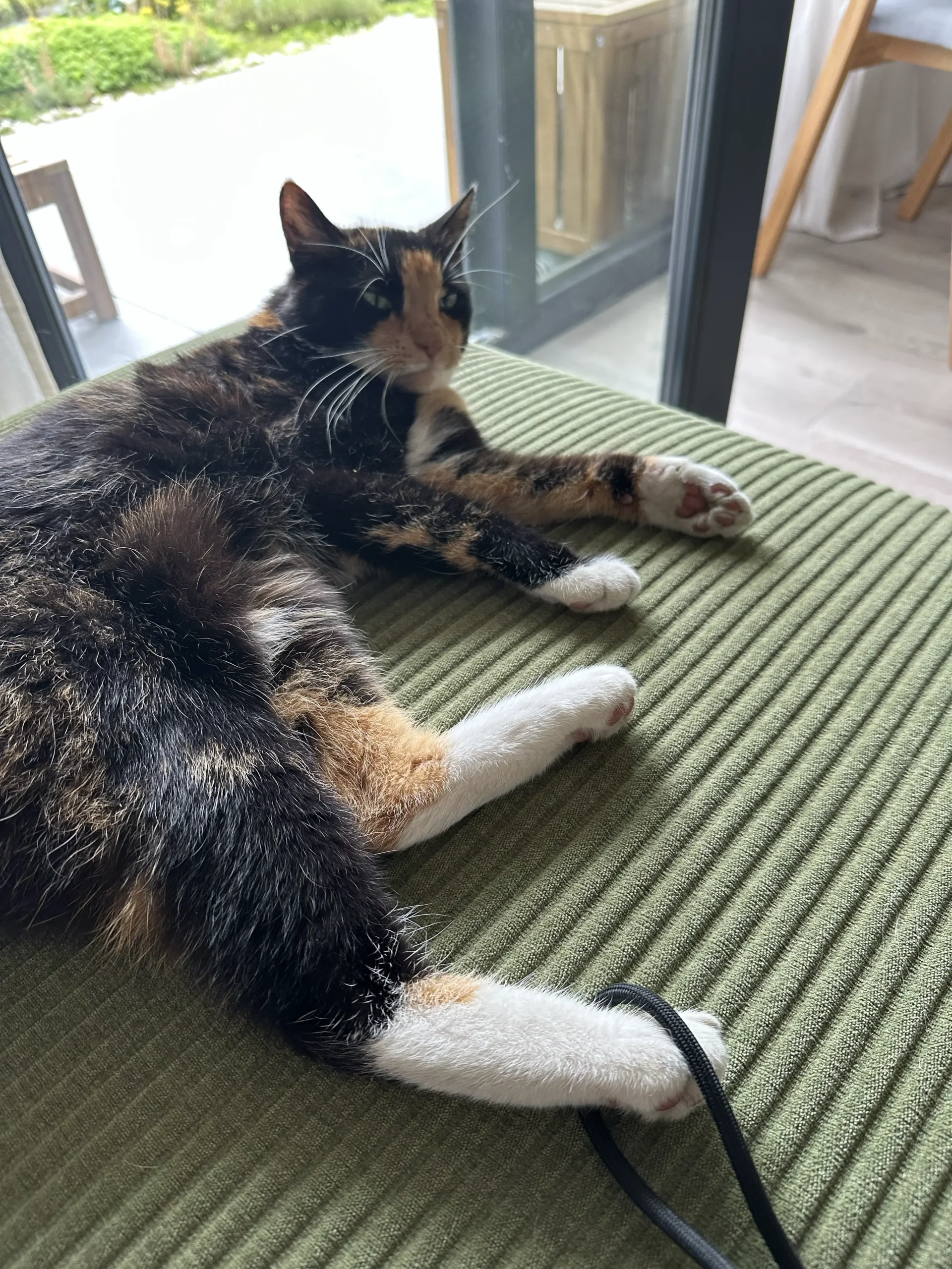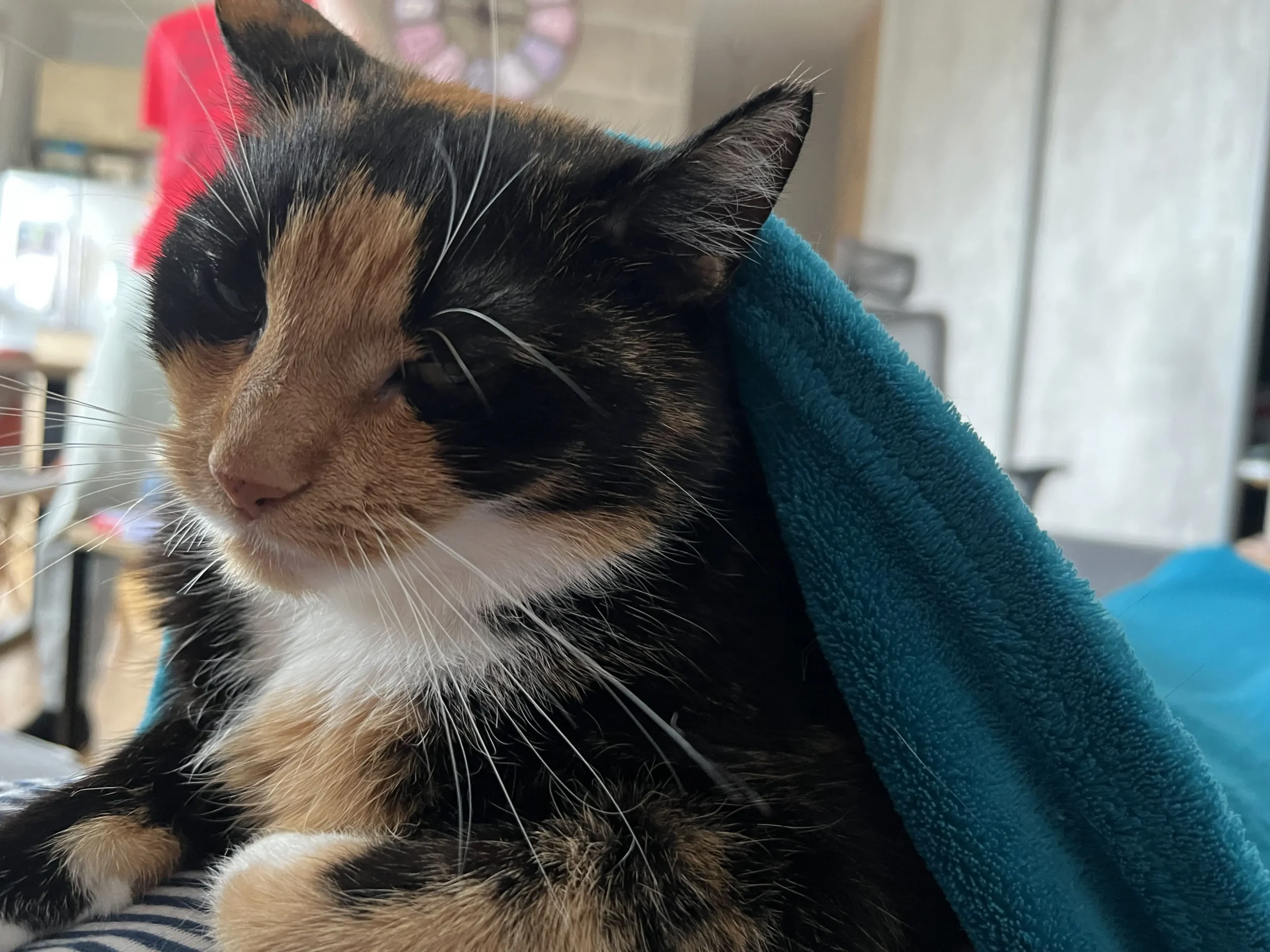 7 letnia trikolorka jest bardzo towarzyska i otwarta do ludzi.